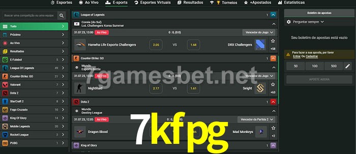 O 7kfpg oferece uma grande seleção de opções de apostas em e-sports com probabilidades competitivas